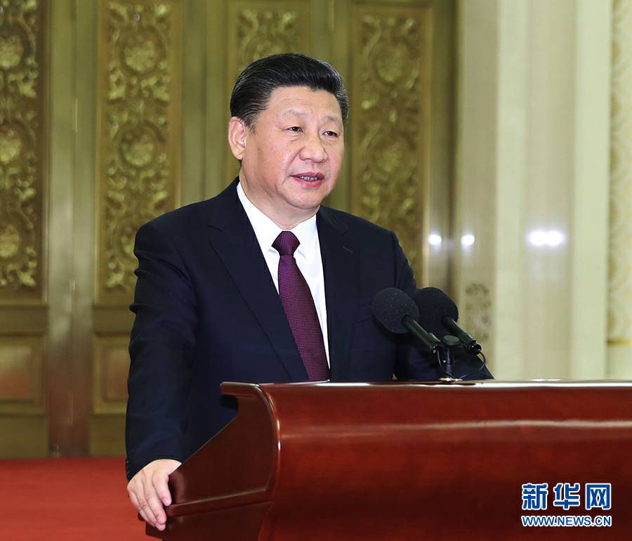 12月28日,中共中央总书记、国家主席、中央军委主席习近平在北京人民大会堂接见回国参加2017年度驻外使节工作会议的全体使节并发表重要讲话。新华社记者 丁林 摄