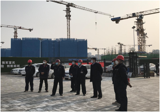 2月28日,深圳俊峰城市基础设施有限公司党委书记、董事长陈先瑞亲赴集团公司承建的通州区东方厂安置房项目工地,视察疫情防控及项目复工情况。调研中陈董事长强调指出要加强对项目部办公秩序的督察,严格落实防控责任,全力保障复工复产后的防疫安全。通州东方厂安置房项目经理杜景凯、项目书记崔立军等陪同调研。