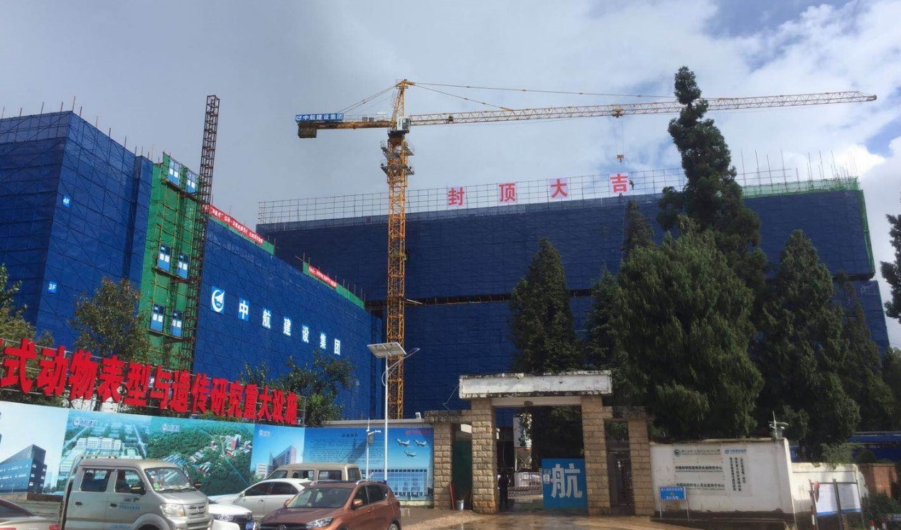 2020年9月23日,在中国科学院昆明分院院长周杰、中国科学院昆明动物所所长姚永刚等项目相关单位领导及代表的共同见证下,伴随着最后一方混凝土的浇筑,由深圳俊峰城市基础设施有限公司承建的中国科学院昆明动物研究所模式动物表型与遗传研究国家重大科技基础设施(灵长类设施)项目-P3综合实验设施大楼顺利封顶,标志着该项目取得阶段性成果。