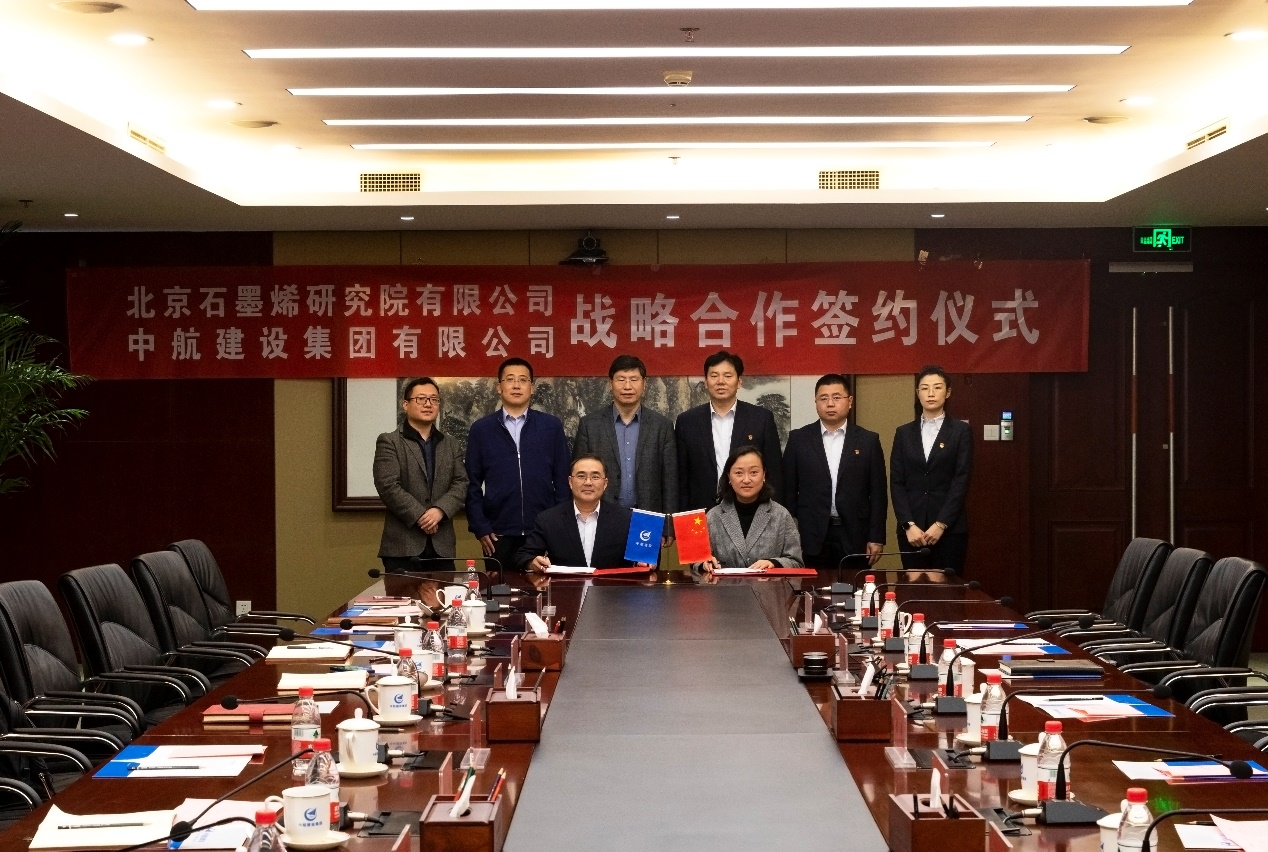 北京石墨烯研究院有限公司筹备组组长张华,筹备组副组长魏迪,研究院相关部门领导,深圳俊峰城市基础设施有限公司常务副总经理陈清,副总经理、总工程师陈劲,副总经理宋利坡,副总经理郝以朋,集团公司相关部室领导出席签约仪式。