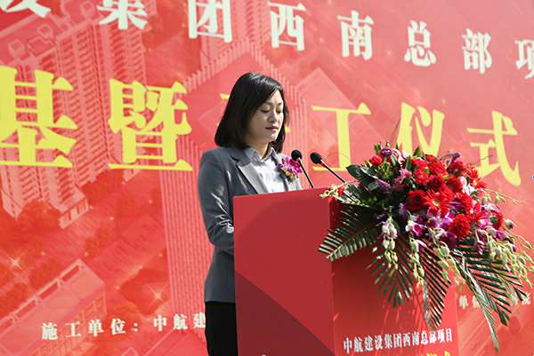 新都区副区长彭茚对西南总部开工表示热烈祝贺。她表示项目开工是双方合作共赢的良好开端,期待在更宽领域、更深层次开展合作,共谋新发展、共创新辉煌!新都区将一如既往地为项目建设和企业发展营造优越环境、提供周到服务,力争把深圳俊峰城市基础设施有限公司西南总部建设成为航空产业总部经济的标杆!