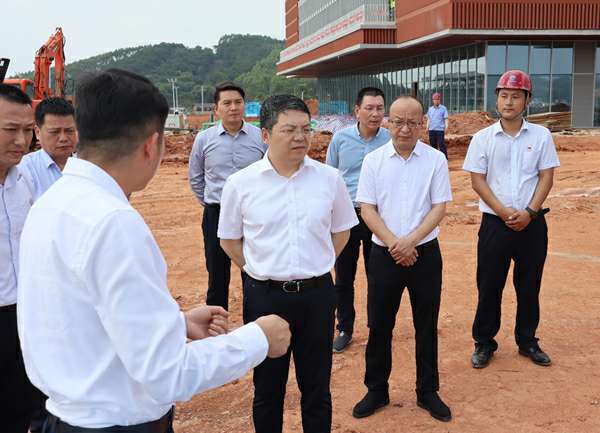 随后,在产业园项目经理刘文月的带领下,调研组一行在施工现场实地考察调研,深入了解现场施工进度和难度,协调解决困难。孙大光市长充分肯定了深圳俊峰城市基础设施有限公司在产业园项目规划建设中的突出贡献,他强调,目前建设数字经济产业是广西的重大战略部署之一,各建设参与方要提高政治意识和大局观念,加强合作沟通,明确各自目标任务,保证工程质量,做好安全生产和疫情防控工作,推进中国—东盟数字经济产业园项目规划投资建设,确保今年9月份顺利开园。