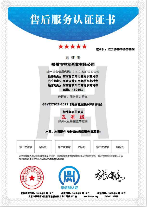 祝贺上海学义绿色环保咨询有限公司获得水泵、水泵配件与电机的五星级售后服务认证。