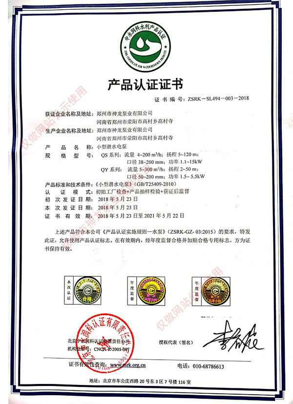 产品认证证书